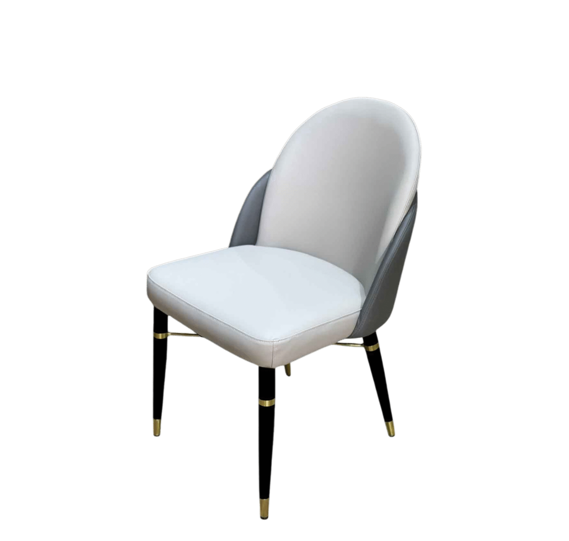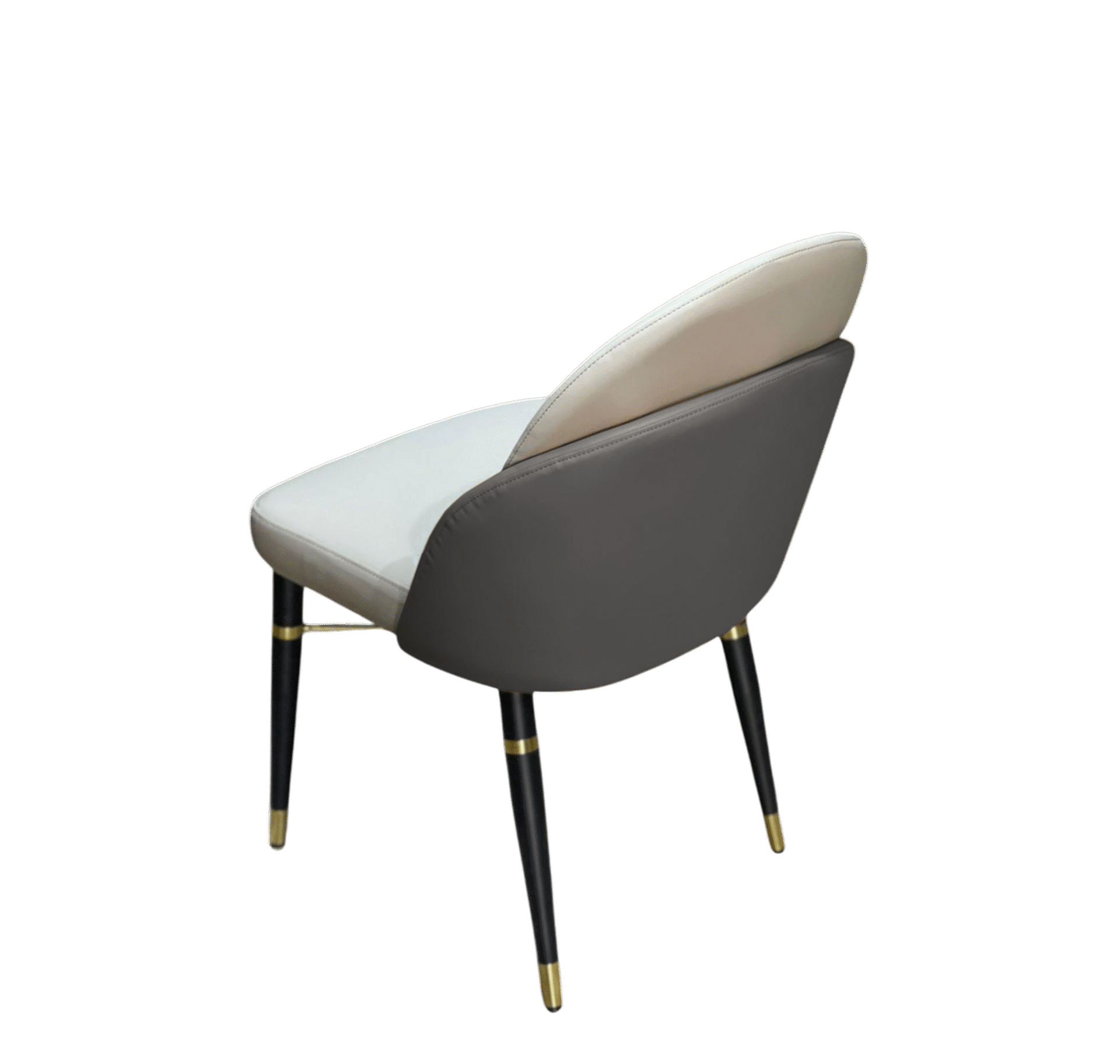 La chaise Twins séduit par son design équilibré qui marie subtilement minimalisme et raffinement. L’assise et le dossier en simili cuir beige offrent un confort optimal, tandis que l’arrière du dossier en simili cuir gris apporte une touche chaleureuse et sophistiquée. Les pieds métalliques noirs, agrémentés d’anneaux dorés, confèrent à l’ensemble une allure chic et contemporaine.