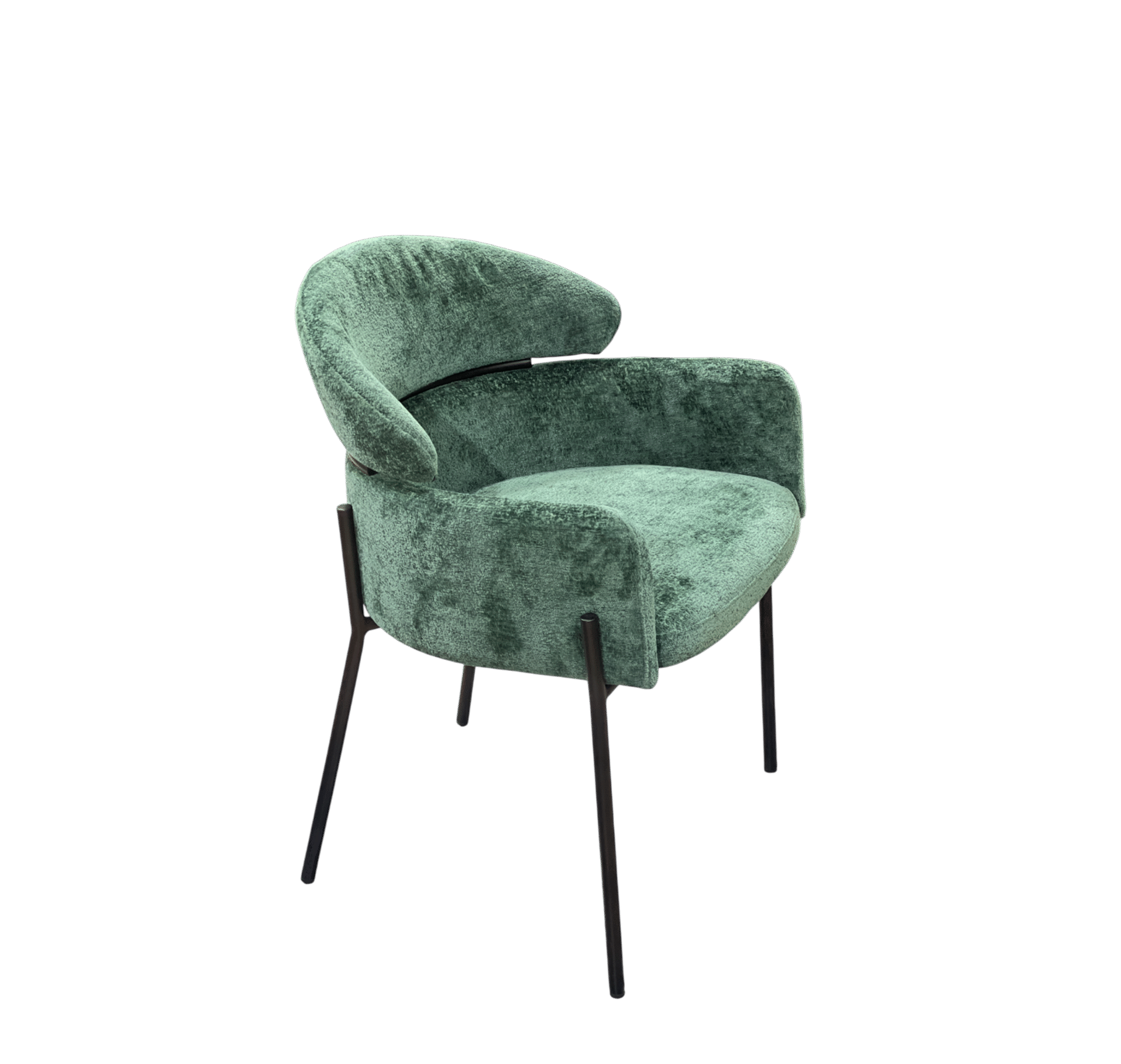 Apportez style et confort à votre intérieur avec ce fauteuil en tissu bouclette vert royal . Son dossier arrondi et ses accoudoirs intégrés offrent une assise enveloppante, tandis que le piètement en métal noir assure stabilité et modernité. Idéal pour salon, bureau ou espace professionnel, il allie design contemporain et confort quotidien.