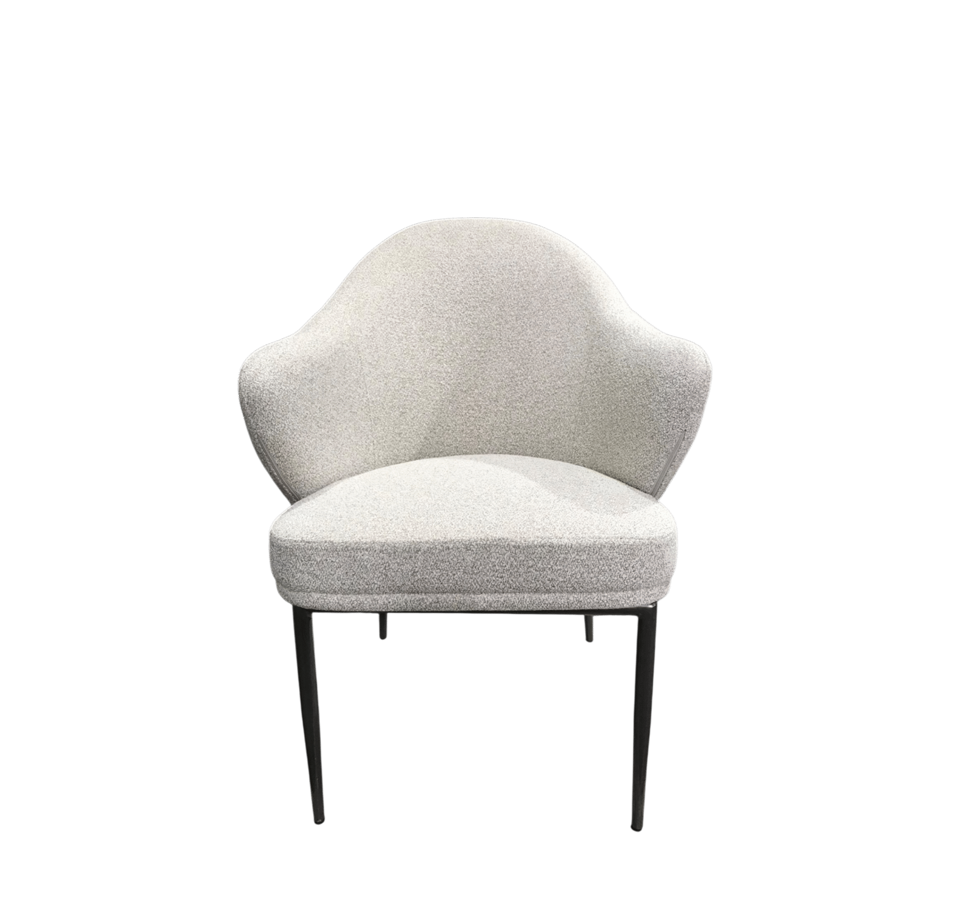 - Revêtement intérieur : L’assise et l’intérieur du dossier sont recouverts d’un tissu gris de type bouclé ou chiné, doux au toucher.