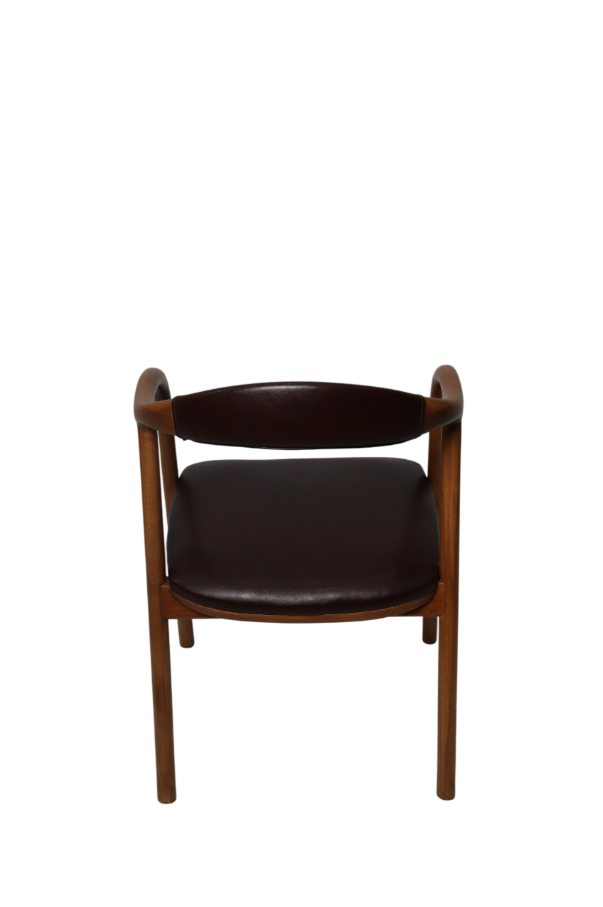 Le fauteuil MODERNA séduit par son design épuré et intemporel, mêlant harmonieusement bois naturel et assise en revêtement marron . Sa structure en bois massif aux lignes arrondies apporte une touche chaleureuse et authentique, tandis que son dossier légèrement incurvé avec insert rembourré assure un excellent maintien du dos.