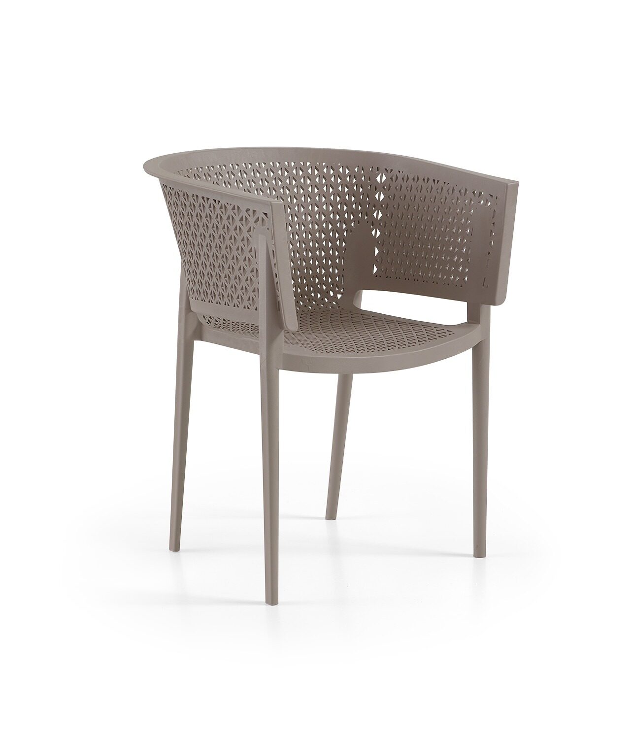 fauteuil  moderne en polypropylène, au design ajouré et épuré. Légère, résistante et facile d’entretien, elle convient parfaitement à un usage intérieur comme extérieur. Son assise ergonomique offre un bon confort tout en apportant une touche contemporaine à votre espace.