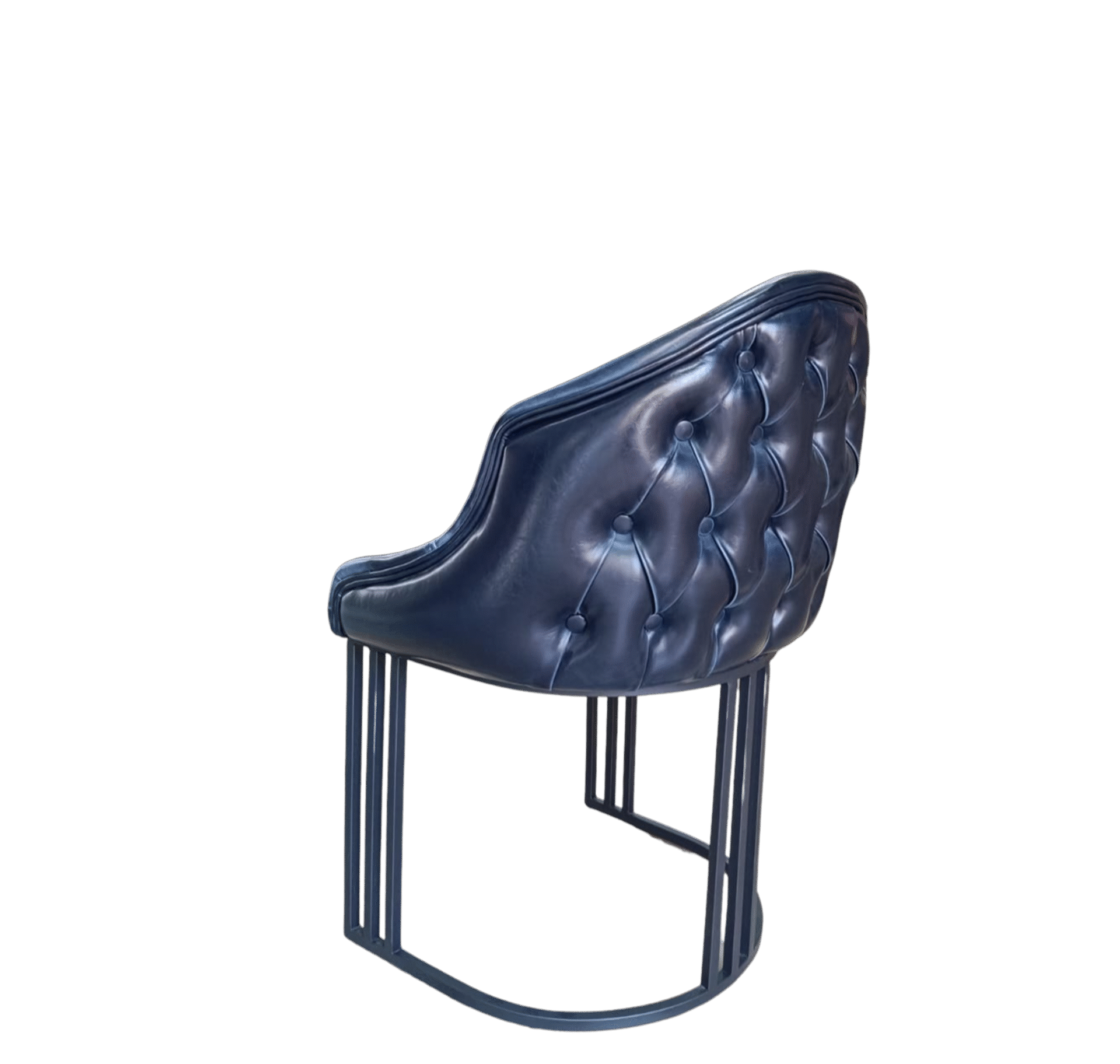 Élégante et contemporaine, la chaise Lusso marie confort et caractère. Son assise et son dossier enveloppants, revêtus de simili cuir synthétique bleu foncé , offrent un toucher agréable et un maintien optimal. La structure métallique noire, au piètement original en forme géométrique, confère à l’ensemble une allure moderne et sophistiquée.