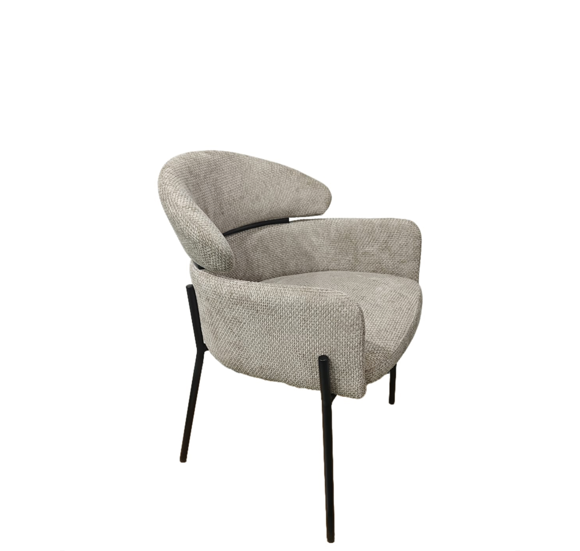 Fauteuil au design moderne et enveloppant, revêtu d’un tissu bouclette doux et tendance. Son piètement en métal noir assure stabilité et élégance, idéal pour les espaces contemporains et professionnels.
