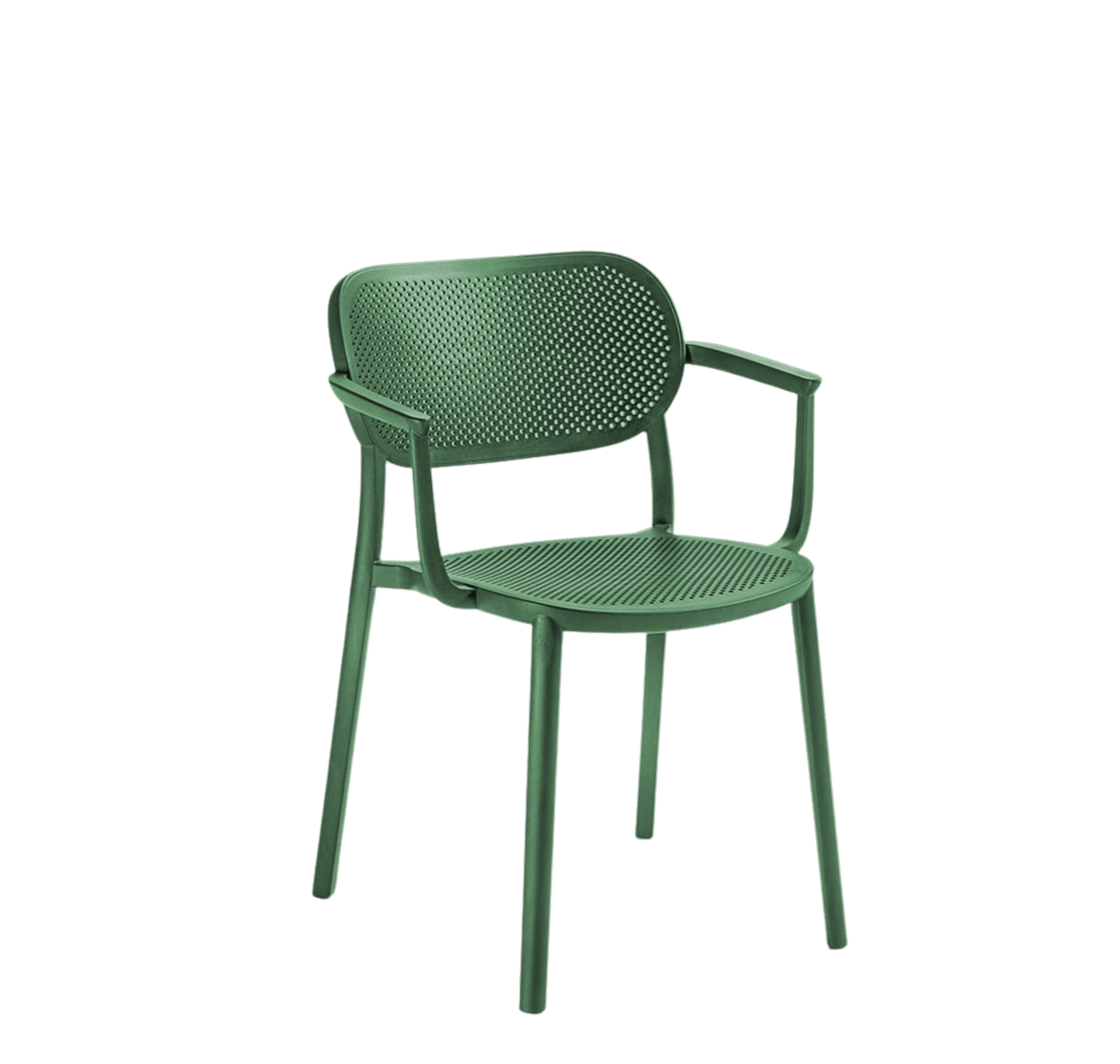 le Fauteuil NUTA design moderne en polypropylène, à la fois léger, robuste et facile d’entretien. Son assise et son dossier perforés offrent une excellente aération et un confort optimal. Les accoudoirs intégrés et la finition verte apportent une touche contemporaine, idéale pour une utilisation intérieure et extérieure (terrasse, jardin, café, restaurant).