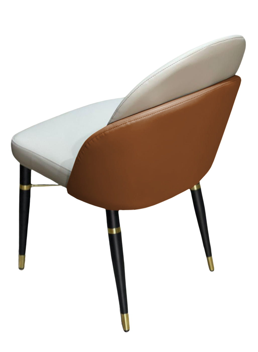 La chaise Twins séduit par son design équilibré qui marie subtilement minimalisme et raffinement. L’assise et le dossier en simili cuir beige offrent un confort optimal, tandis que l’arrière du dossier en simili cuir marron apporte une touche chaleureuse et sophistiquée. Les pieds métalliques noirs, agrémentés d’anneaux dorés, confèrent à l’ensemble une allure chic et contemporaine.